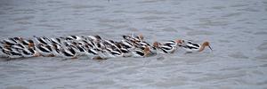 American Avocets Fishing in Unison 1