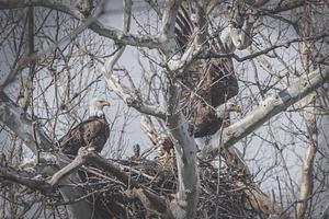 Female Bald Eagle Leaves Nest as Dad and Eaglet Look On