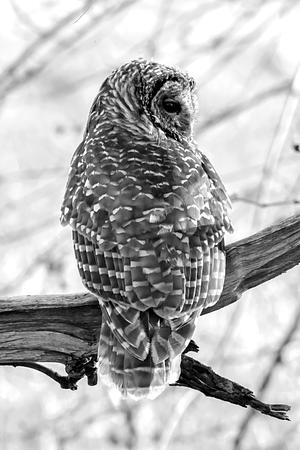 Barred Owl Before the Hunt 2, black and white
