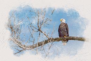 Bald Eagle on Lookout Digital Watercolor 1