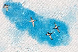 Wood Ducks in Flight Digital Watercolor 1