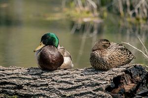 Mallard Couple Resting on a Log