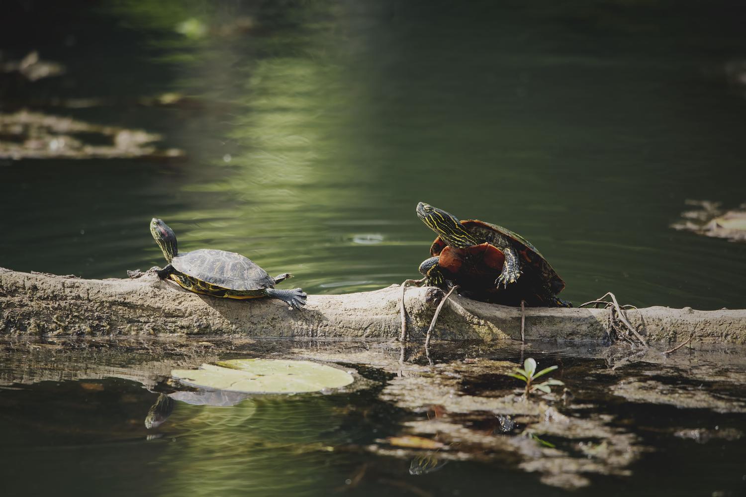 I am not sure if these are painted turtles or red-eared sliders, or both. Photographed at the Flint Hills NWR, Kansas.