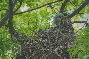 Yellow Crowned Night Heron Chicks in Nest